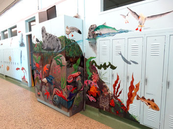 L'estran rocheux est représenté à divers endroits dans la murale